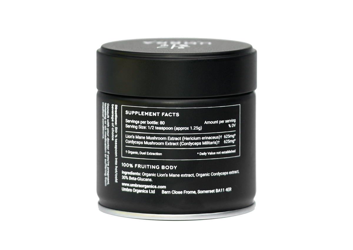 Lion’s mane and cordyceps Enhance both body and mind with one of my favorite combinations as the tins says it helps focus and perform when I need it.